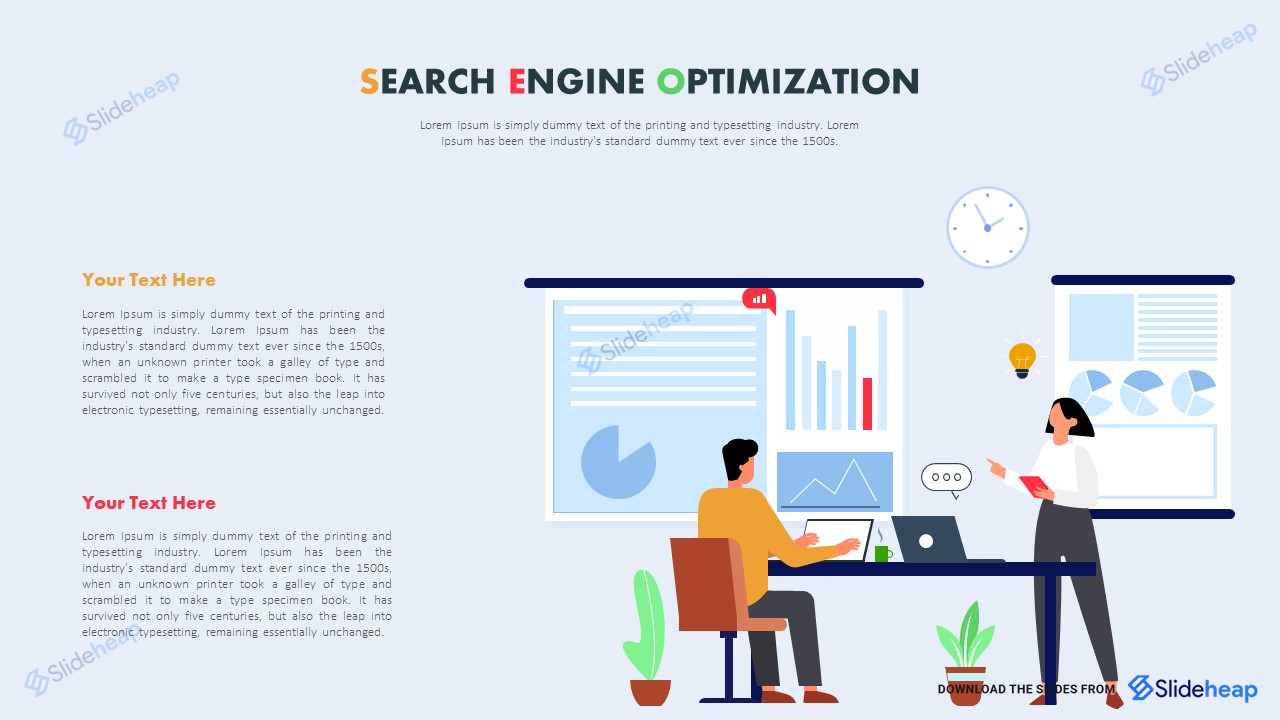 One way to let your audience know how things are going with SEO strategy is through a presentation. You could make one using these templates. You can use these templates to educate the SEO strategy you are using or show the progress you have made. You can educate your audience the importance of SEO and how it is crucial to achieve the target. Or you can use them for showing how the SEO algorithm works and how you plan to dominate in SEO and crush your competitors with your superior SEO strategy.